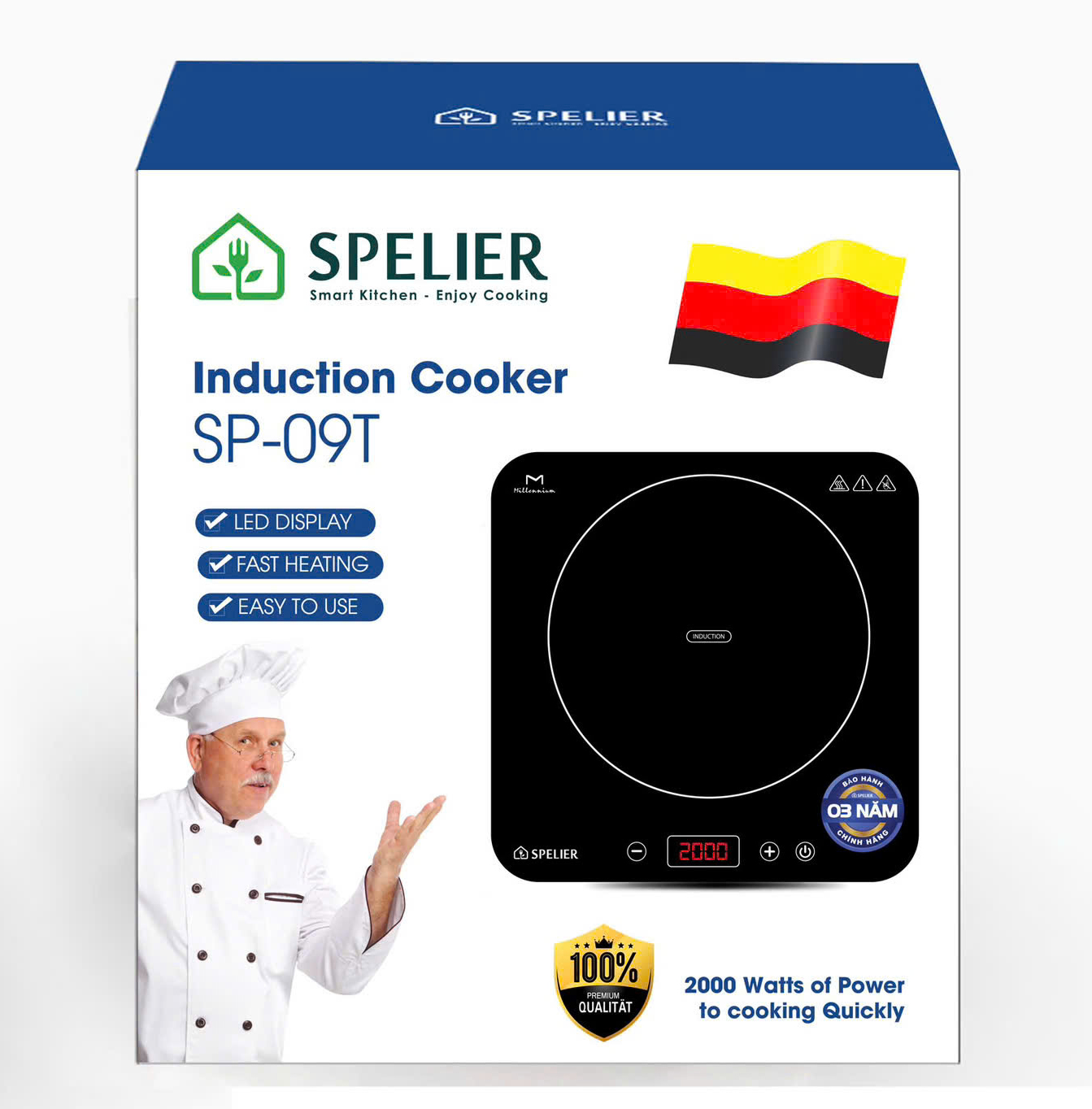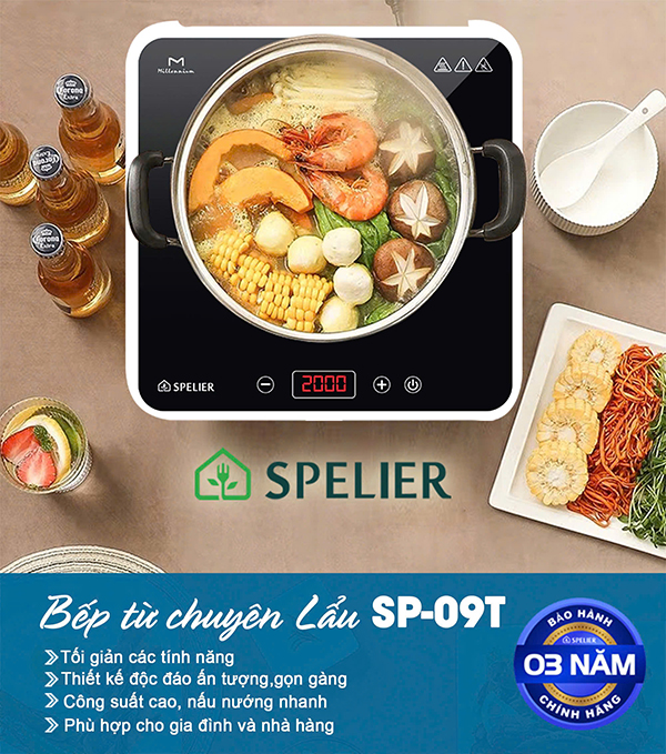 dòng sản phẩm mới nhất của hãng Spelier thương hiệu đến từ CHLB Đức. Bếp thiết kế 1 vùng nấu từ công suất 2000w sử dụng mặt kính Ceramic – Menalium cao cấp chịu lực, chống shock nhiệt, chống trầy xước, dễ dàng vệ sinh sau khi đun nấu. Điều khiển cảm ứng phím cộng trừ, tối giản các tính năng, thiết kế bếp nhỏ gọn phù hợp với các gia đình, và nhà hàng.